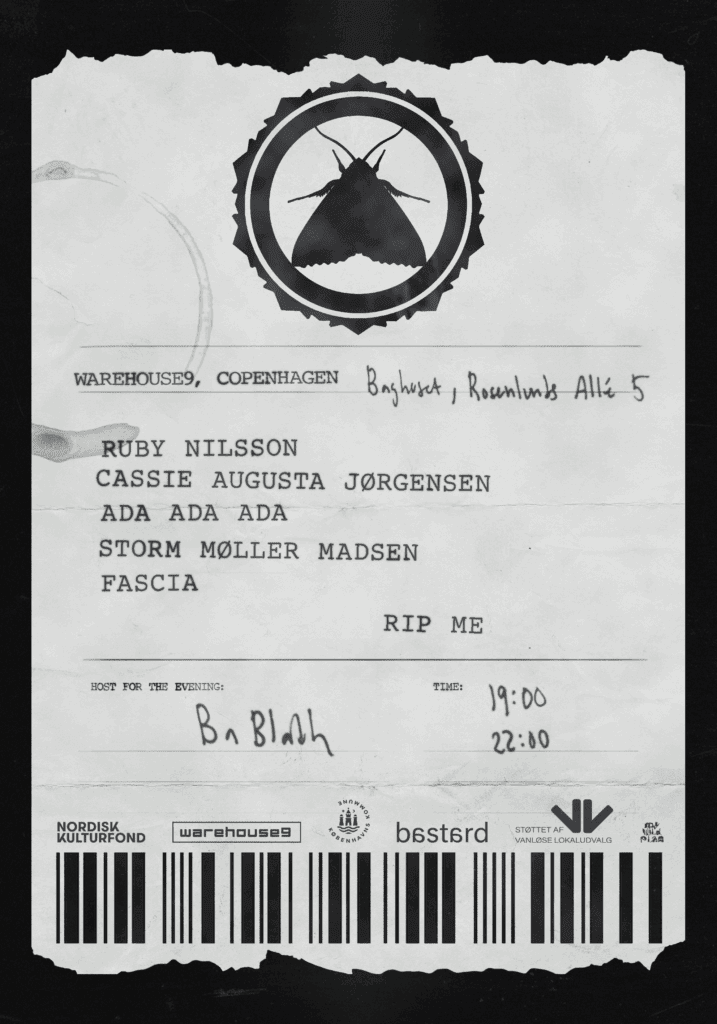 On October 23rd Warehouse9 in Copenhagen hosted C.U.T.S. for the evening, with a program which included Ruby Nilsson, Cassie Augusta Jørgensen, ADA ADA ADA, Storm Møller Madsen and Fascia.