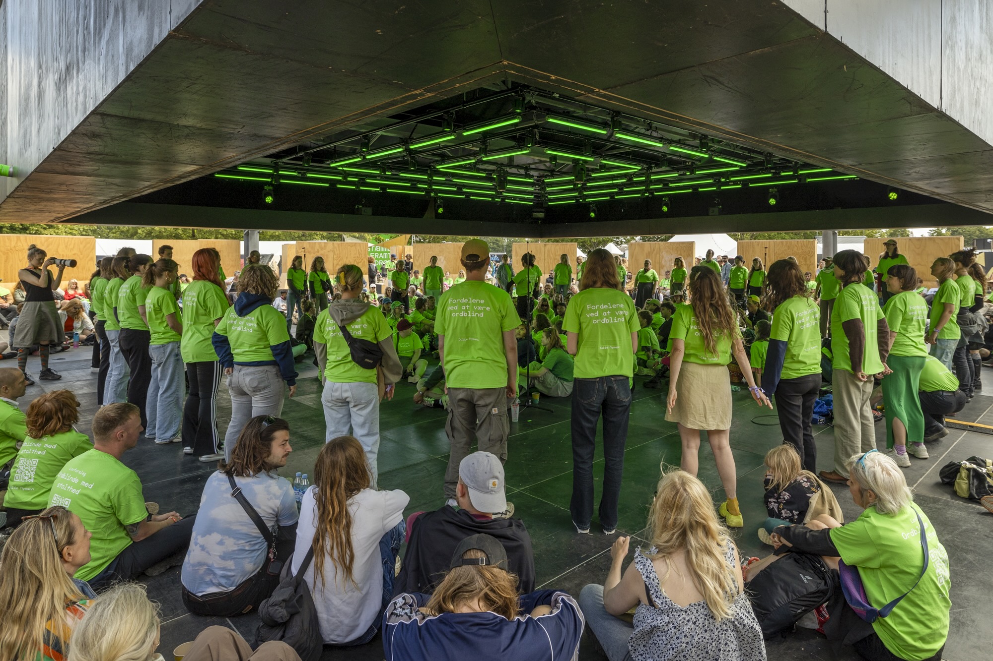 På den måde breder Julie Nymanns bidrag til Roskilde Festival 2025 sig ikke kun over to scener, Gloria og Platform, men faktisk til hele festivalen, da man fredag og lørdag kunne spotte de grønne Ordblinde med stolthed-t-shirts rundt omkring på festivalpladsen til koncerter og i madkøer.