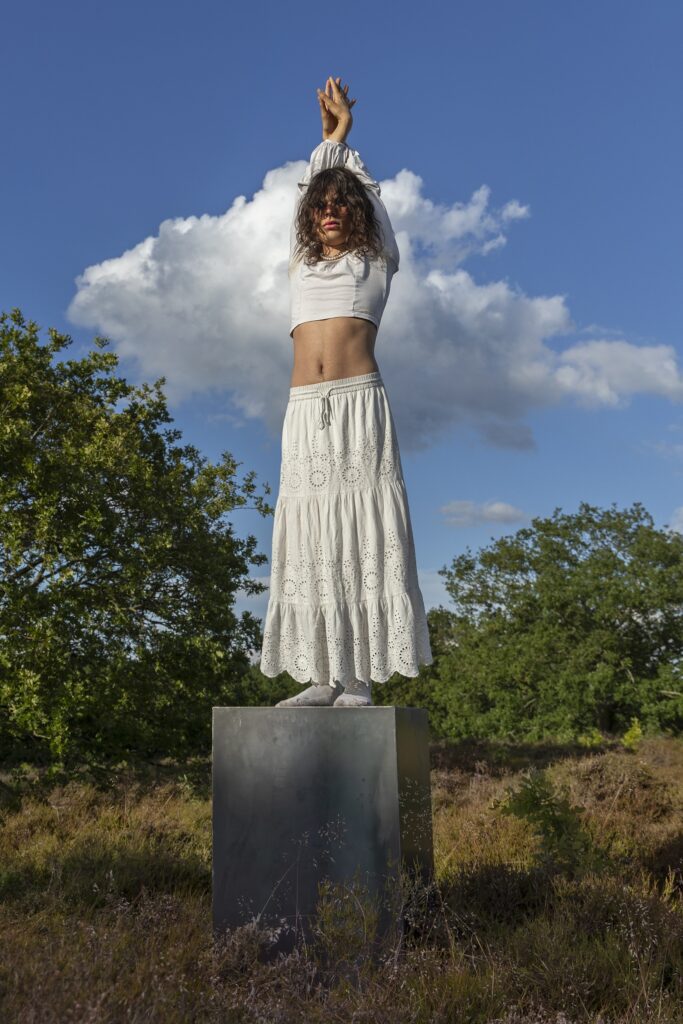 Fotograf Frida Gregersen har gennem et helt år inviteret 12 personer til at interagere med en sokkel i Rudolf Tegners Statuepark. Hver måned har hun kørt en sokkel på sækkevogn ud i parkens hedelandskab, så hun sammen med deltagerne kunne undersøge forholdet mellem natur og kultur. Skellet mellem fotograf, model og omgivelser blev udviskede, og et individuelt såvel som kollektivt blik åbnede sig. Det er netop kendetegnende for Frida som person og hendes praksis, at hun involverer andre tæt ind i legende og performative undersøgelser for at skabe fotografier. Jeg besøgte Frida i hendes atelier på Amager til en samtale om hendes kommende udstilling Axis Mundi i Rudolf Tegner Statueparken.