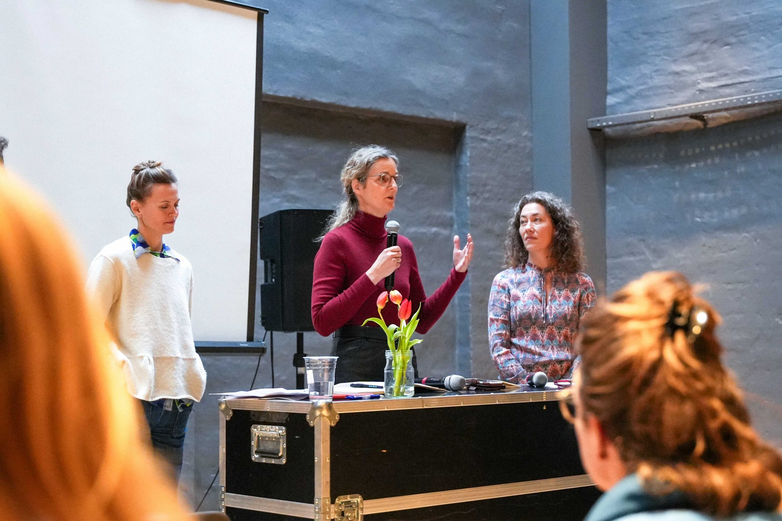 Nu følger en panelsamtale mellem tre teaterledere om Fair Practice Kodeks værdierne, og hvordan de arbejder med dem; Eva Præstiin fra Betty Nansen Teatret, Miriam Frandsen fra Toaster og Lotte Kofod Ludvigsen fra Bora Bora.